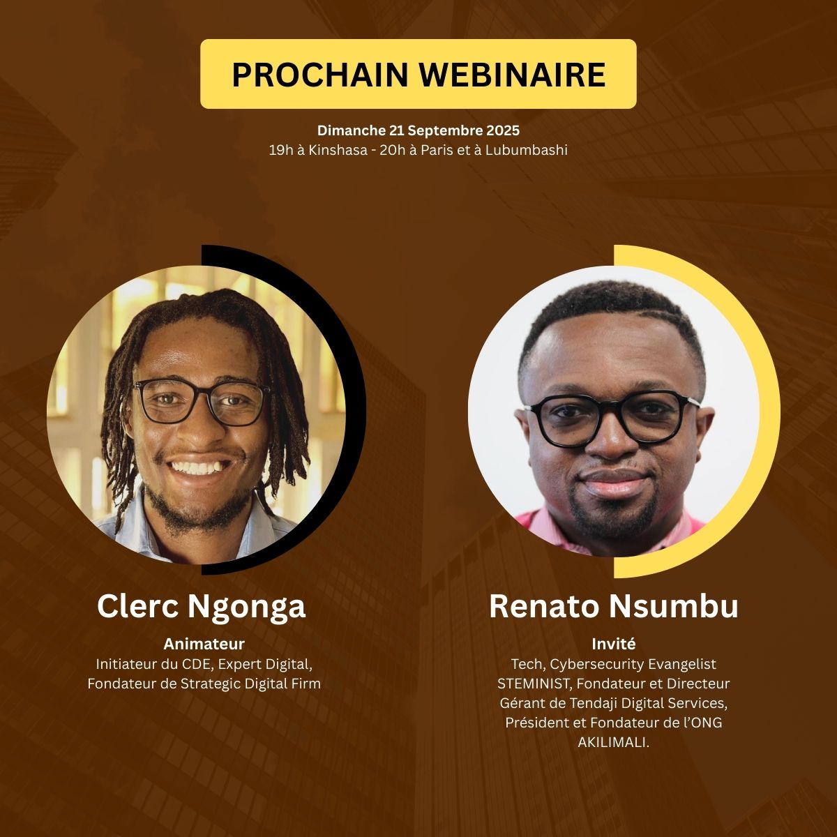Plongez dans des sessions interactives animées par des experts renommés, abordant des thèmes impactants pour votre croissance entrepreneuriale et professionnelle. Explorez des sujets variés et bénéficiez de précieux conseils et astuces pour propulser votre entreprise vers le succès. Ne manquez pas l'opportunité d'apprendre et de vous inspirer grâce à nos webinaires de qualité, organisés pour vous aider à exceller dans votre domaine.